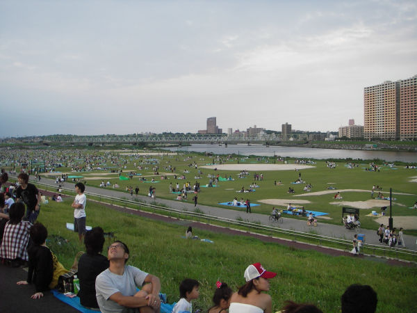 東京での花火大会というと「朝から場所取り」「人大杉で見られない」……などほとんど良い印象はないのだが、 この江戸川区花火大会は広大な河川敷に寝そべって花火が見られるというもの。